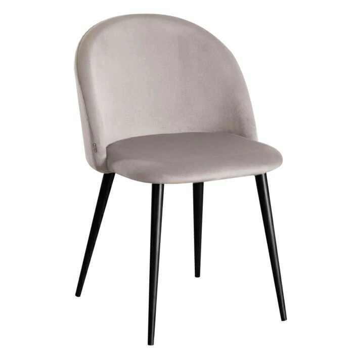 Respaldo y asiento tapizados en gris velvet, suave al tacto y de gran durabilidad