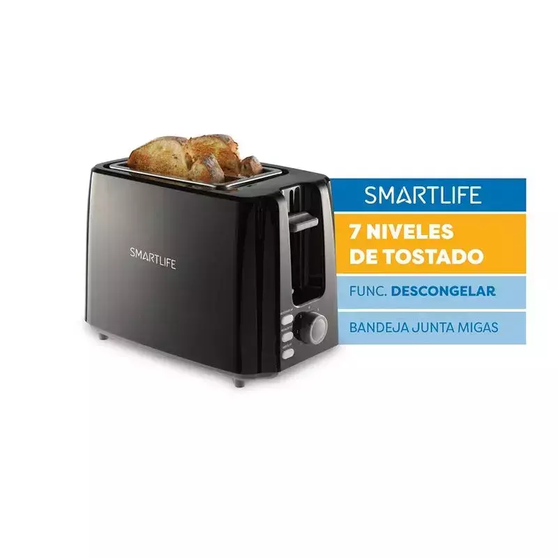La tostadora SL-TO1301 te ofrece practicidad y versatilidad en tu cocina. Su bandeja recogemigas extraíble simplifica la limpieza, mientras que las funciones de descongelar y recalentar te permiten optimizar tus tiempos. Descongela pan recién sacado del freezer para un desayuno rápido o recalienta tostadas frías para evitar desperdicios. La función cancelar te permite detener el tostado en cualquier momento, evitando quemaduras. Como todos los pequeños electrodomésticos Smartlife, cuenta con 2 años de garantía oficial.